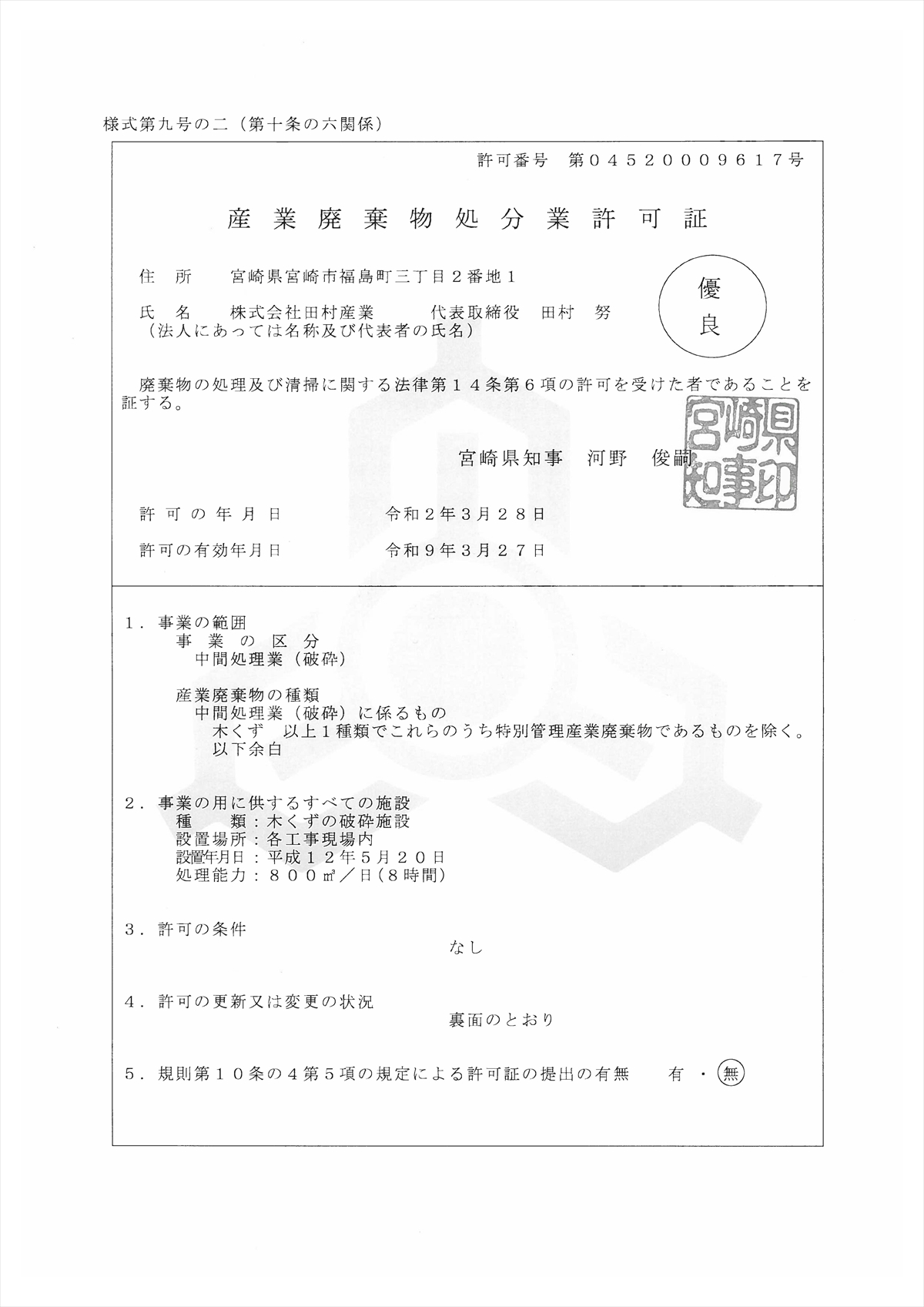 通常の許可基準よりも厳しい基準(優良基準)を全て満たし、認定を受けた産業廃棄物処理業者(優良認定業者)については、通常5年間の許可の有効期間が7年間に延長されます。